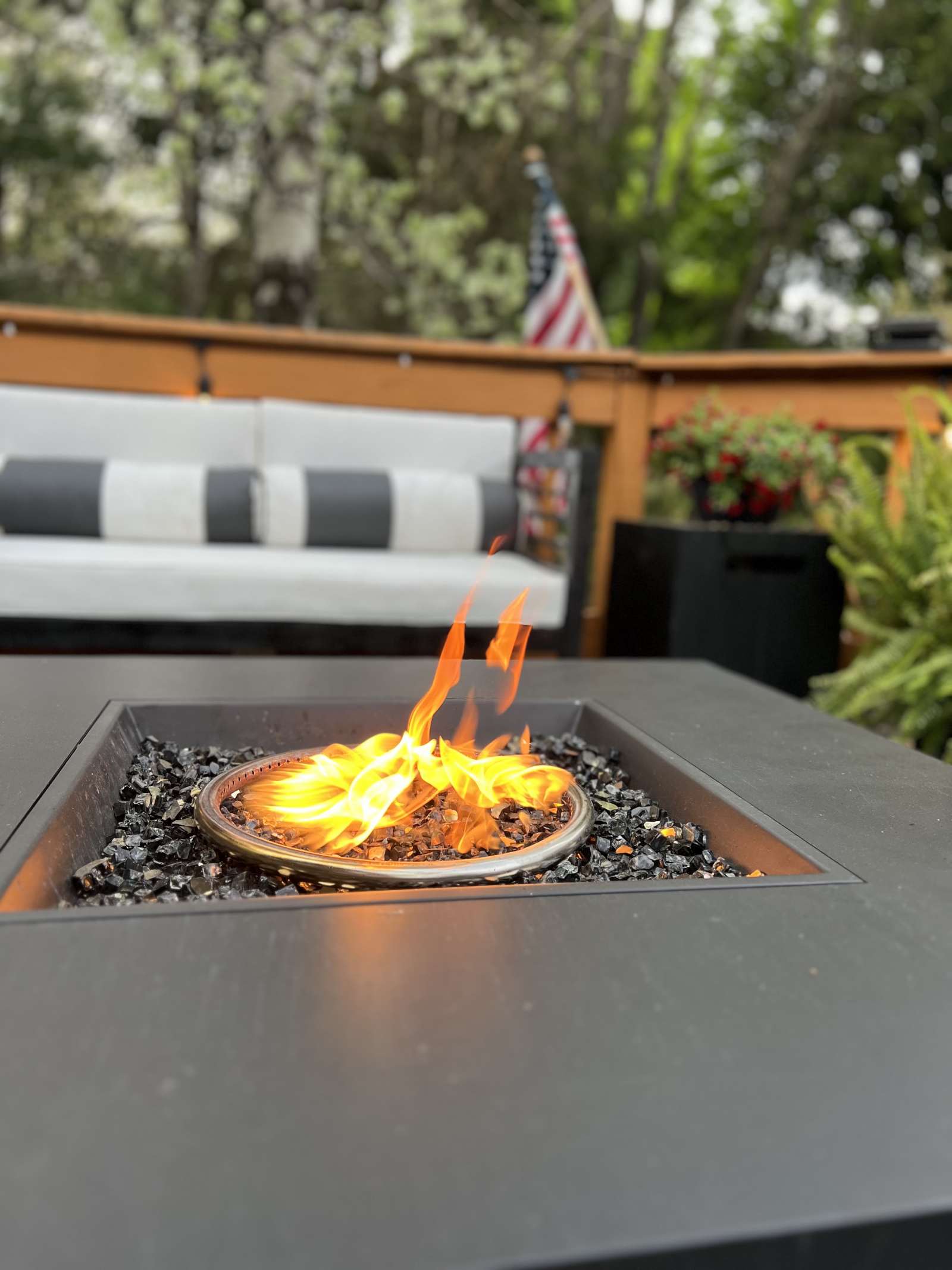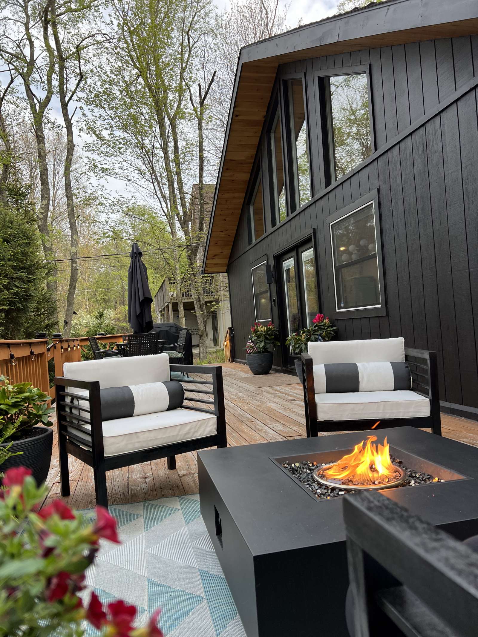 *Expansive front deck with Ambiance Fire Table and Comfy Seating
