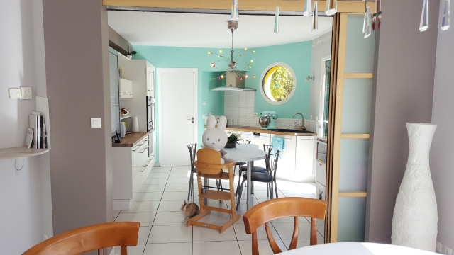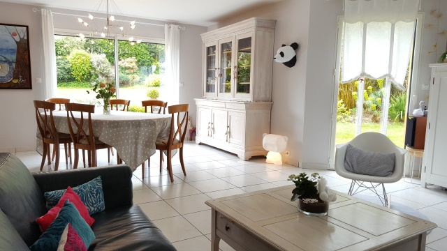 Casa luminosa e colorata di 150 m2 in un giardino curato, situata vicino a un laghetto e al villaggio con tutti i comfort